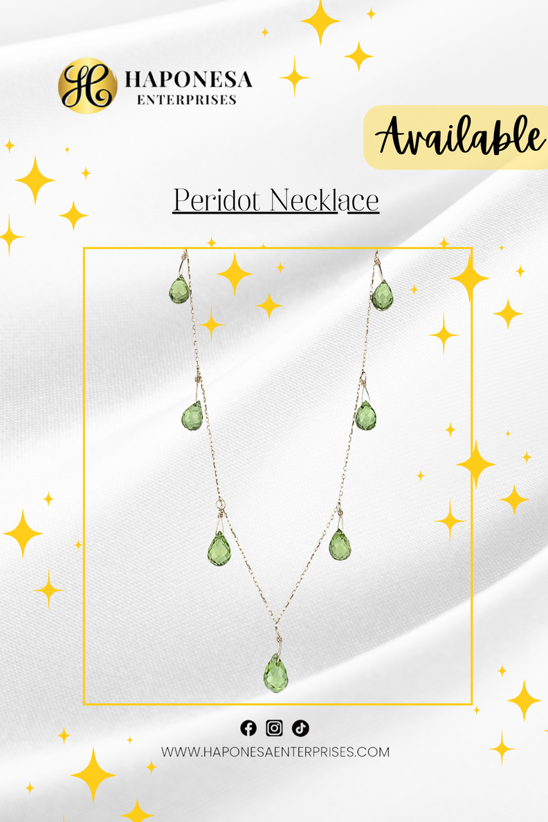 Crafted with elegance and intention, this 18K gold necklace showcases seven natural briolette-cut peridots, each hand-set to capture the gemstone’s vibrant glow.